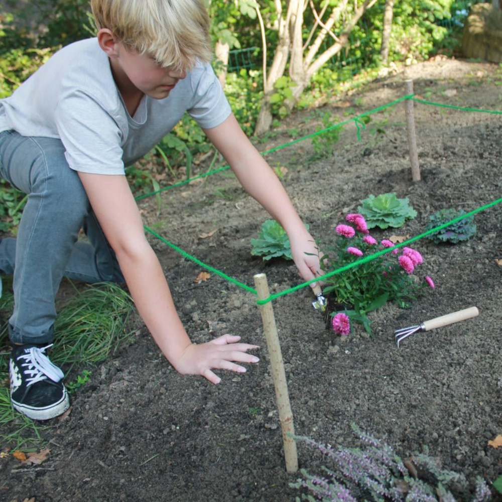 Eine großartige Möglichkeit, Ihrem Kind die Natur beizubringen! Fördert die Familienzeit, indem Kinder neben Ihnen arbeiten. Inklusive Schaufel, Spaten und Seil. Finden Sie 4 Stöcke und binden Sie das Seil herum, um ein quadratisches Grundstück für Ihren Garten zu schaffen und zu bearbeiten.