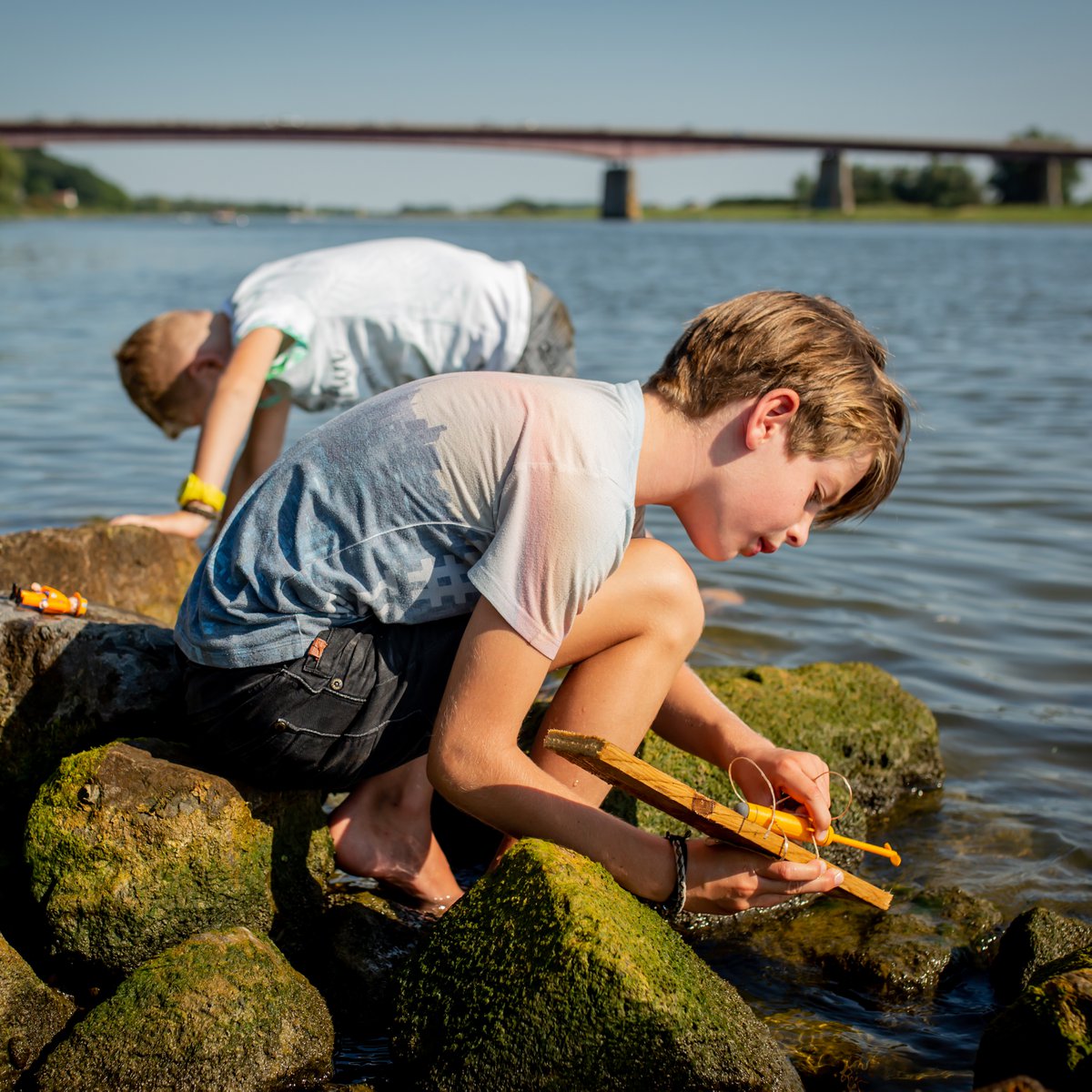 Kinderspielzeug Bootsmotor, wasserdicht. Bau dein eigenes Boot aus einem kleinen Holzbrett oder dickem Papier. AAA-Batterien bereits enthalten. Material: ABS Kunststoff, Silikon. Länge: 15,9 cm.